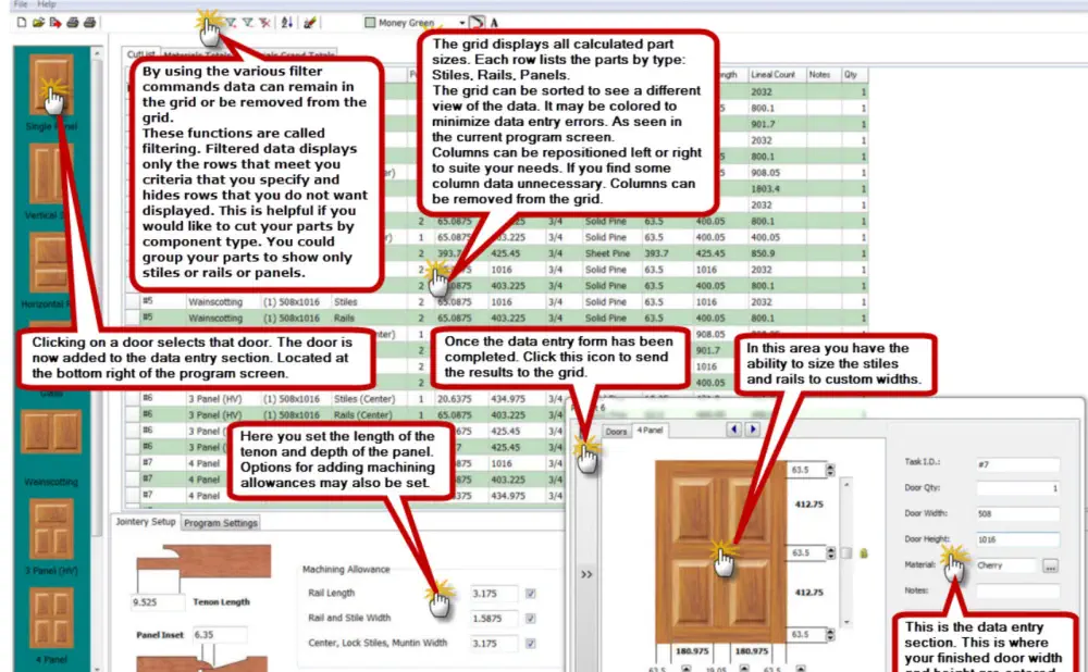 Door Cut calculates all parts that comprise a typical cabinet door. You have total control in determining all your door parameters : all stiles, rails, muntin widths, machining allowances are definable.We also provide you with a valuable option of customizable panel placement within door styles. This option can easily change the appearance of a door style, basically creating a new look or style from the default doorCustomer Review:This is the third time I have bought DoorCut for different computers. It works great for what we do. Our regular design program does both cabinets and doors. A lot of our business is just doors for small local shops. I cannot do just doors with my cabinetmaking design program. DoorCut fills that niche just fine..
